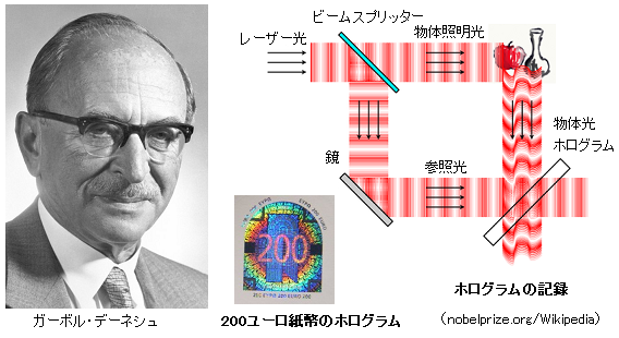 ホログラフィーは1947年にハンガリーの物理学者ガーボル・デーネシュによって発明された。彼は1971年にノーベル物理学賞を受賞しており、この発明に関する特許権も保有した。