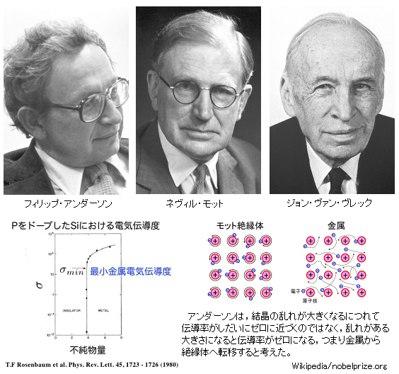 この転移の原因となるのがアンダーソン局在である。1970年代末,理論研究のめざましい発展があり,実験との定量的な比較が可能となった。