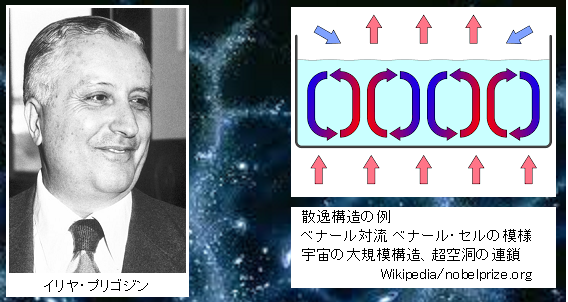 こうした非平衡系における秩序の仕組みとして「散逸構造」という概念を提唱した。